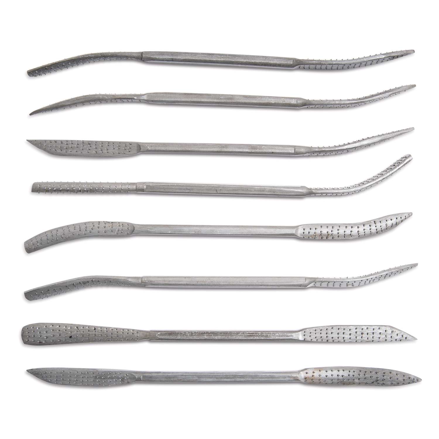 The 8 Piece Riffler Set "L" contains an assortment of large double-ended rifflers which are 25cm long. They are ideal for working on larger soapstones.