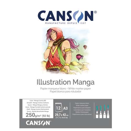 This smooth, pue white paper is ideal for BD, manga, comics and illustration in pencil, ink, marker and watercolour. It is very resistant to scratches and erasing, and also to adhesive film.