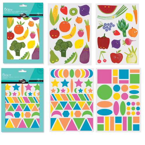 Clairefontaine maildor Baby Stickers are vivid geometric shapes or cute fruits & vegetables with faces, ideal for children to play with and learn.