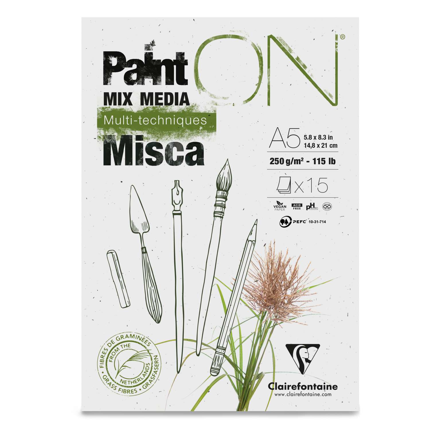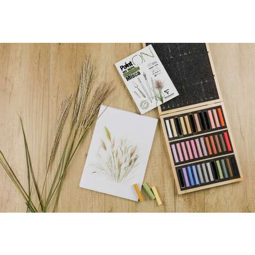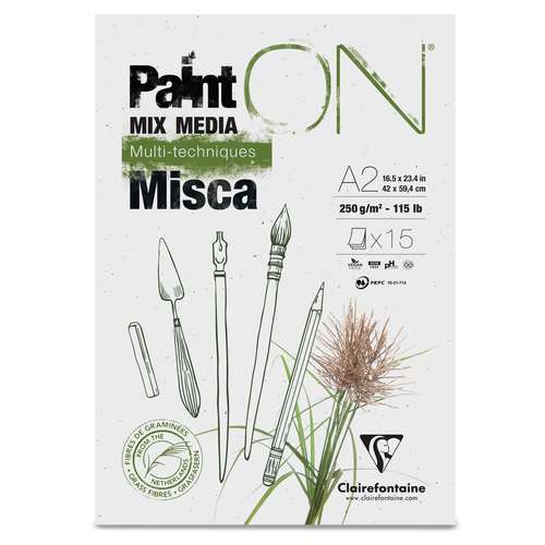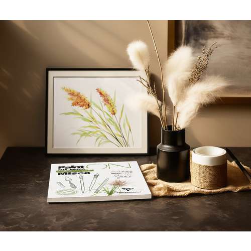 Clairefontaine Paint'ON Multi-techniques paper Misca is made from fast-growing grasses (miscanthus) from the Netherlands. It has a slightly rough surface and is ideal for various wet and dry techniques e.g gouache, felt-tip pen and pencil.