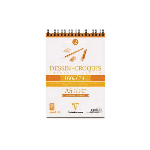 This Clairefontaine Spiral Drawing Pad is ideal for drawing and sketching. It is perfect for dry techniques, and also suitable for gouache and watercolour.