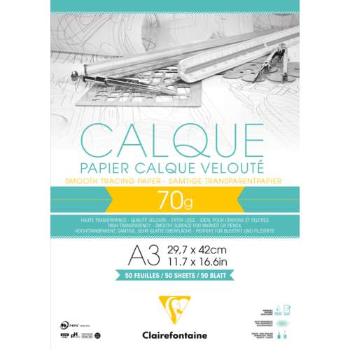 Clairefontaine Smooth Tracing paper offers a wide range for technical and creative use. It is highly transparent, and is ideal for use with pencil, felt pen, graphic pencils or with ink.