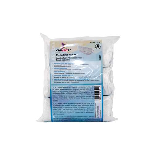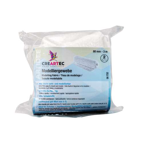 CREARTEC ARTIDEE® Modelling Fabric is a high quality modelling material with a durable plaster coating allowing for a fine, smooth finish. It is ideal for making sculptures,masks and collages.