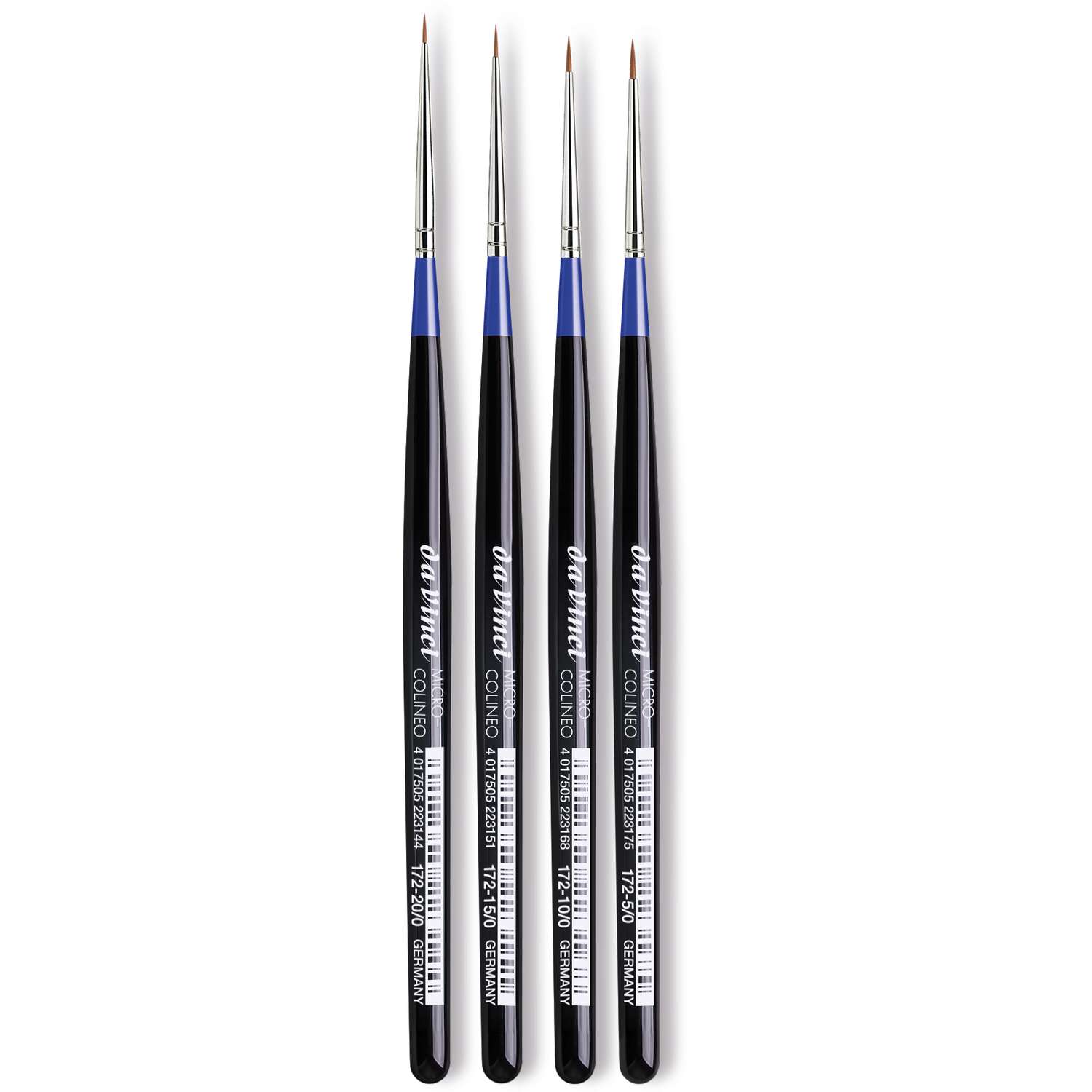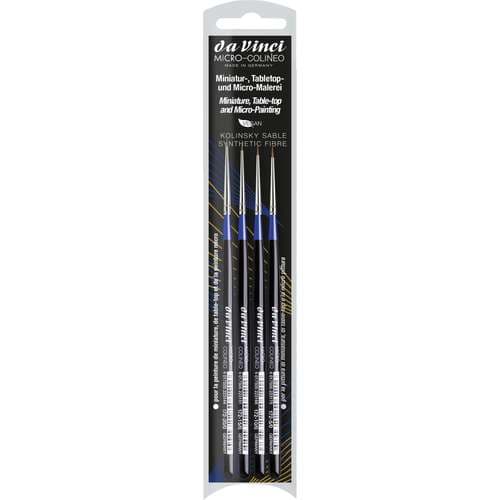 The da Vinci MICRO-COLINEO set series 172 contains 4 high quality miniature brushes with synthetic Kolinsky fibres, specially developed for the finest detail work and miniature painting.