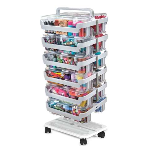 The deflecto® Caddy Organiser is a modular on-the-go storage system with a lift & lock function! This flexible and stackable storage system allows you to neatly organise all your small craft and hobby items and take them with you easily.