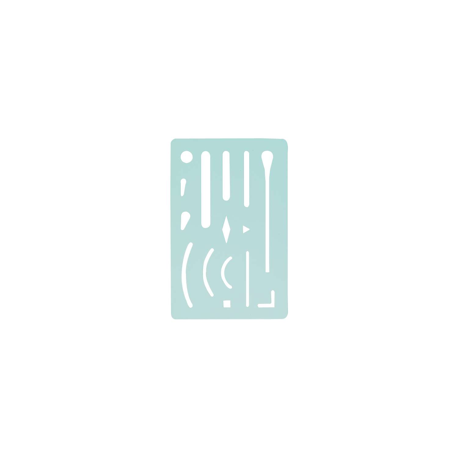 This template features 15 varied cutouts (circles, slots, arcs) that protect surrounding work while allowing for the removal of, or creating highlights in, ink or pencil drawings. The 0.1 mm thickness ensures fine, clean corrections without smudging or damaging adjacent areas, especially on technical drawings or drafting film. It is commonly used to remove specific, tiny details without having to erase large portions of a drawing.