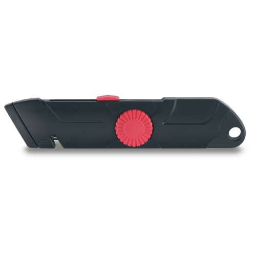 This safety knife is suitable for both right- and left-handed users. It has a robust plastic housing and uses a standard trapezoidal blade.