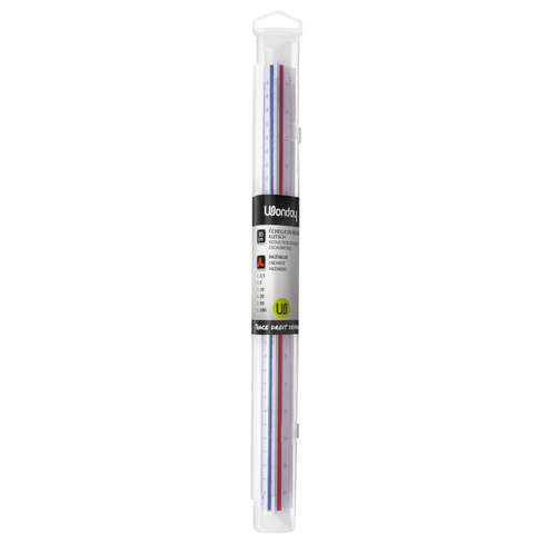 This Engineer's Reduction Scale Ruler has six different scales. It is a 30cm ruler which is star-shaped in cross-section and has three rays.