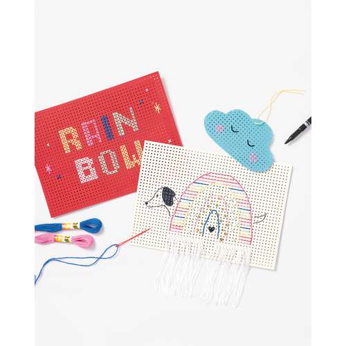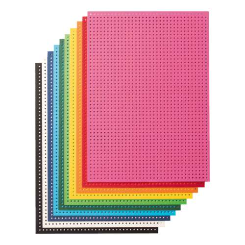 This pack contains 40 colourful boards which are pre-punched, ready for you to embroider with your own designs. An embroidery booklet is also included. The boards measure approximately 17.5 cm x 24.5 cm.