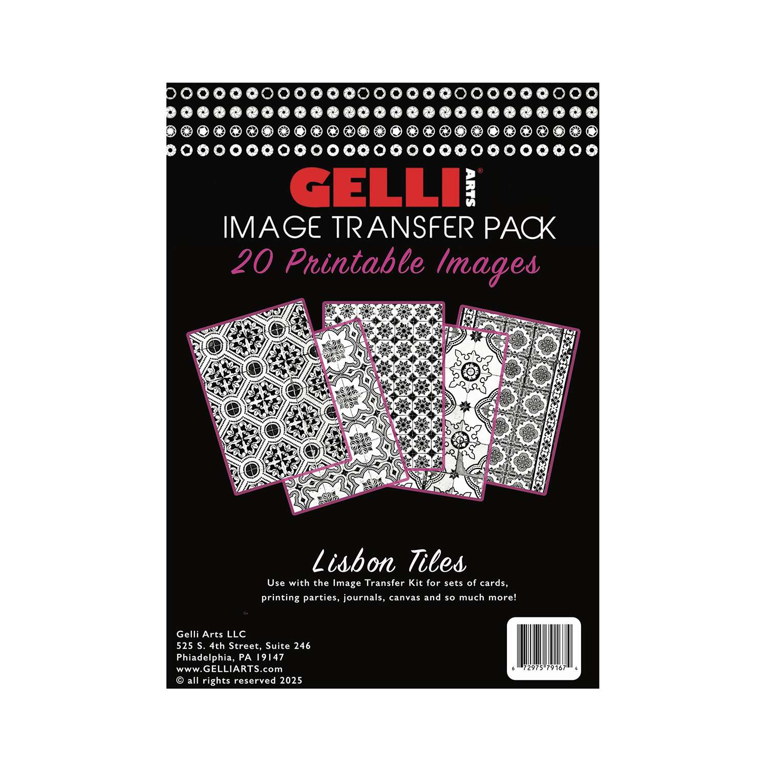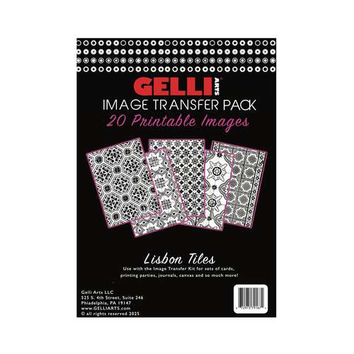 These GELLI ARTS® Image Transfer Printables packs contain 20 images to transfer. They are available in 2 different packs: Wildflowers and Lisbon Tiles.