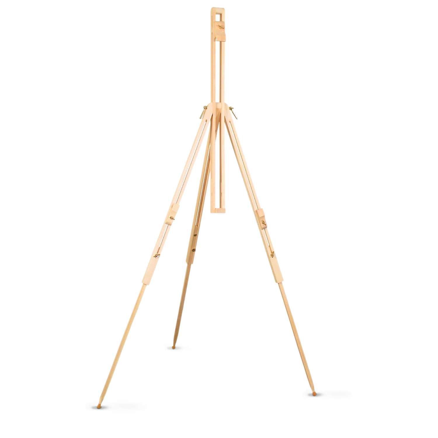 This lightweight field easel weighs just 1.5 kg. It is made of oiled beech wood and is neatly finished with bevelled edges. The sliding picture holder is infinitely adjustable both horizontally and vertically.