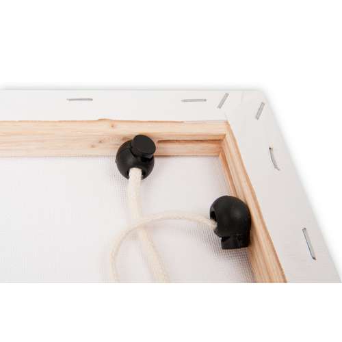 The Gerstaecker Interconnected Canvases are 100% cotton, 300 gsm, and they are coated with lightly absorbent universal primer ready for use. As the canvas is stapled to the back of the stretchers the sides can also be incorporated into your work to give a 3D effect. The gap between the canvases can be altered by adjusting the cords with the stoppers on the back of the canvases.