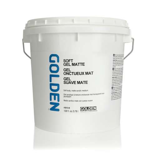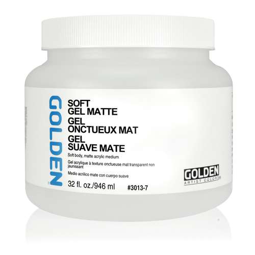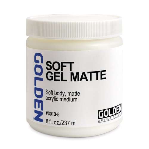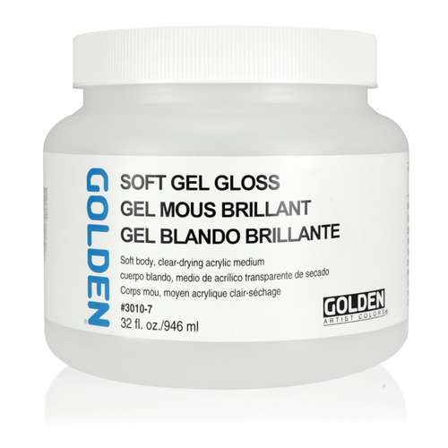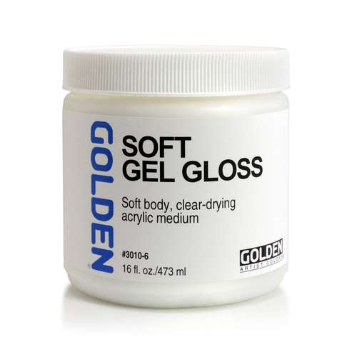 GOLDEN® SOFT GEL is a soft-body, clear-drying, flexible acrylic medium for use with acrylics, and is also excellent as a glue for collages. It is available in gloss, satin or matt, in various pot sizes.