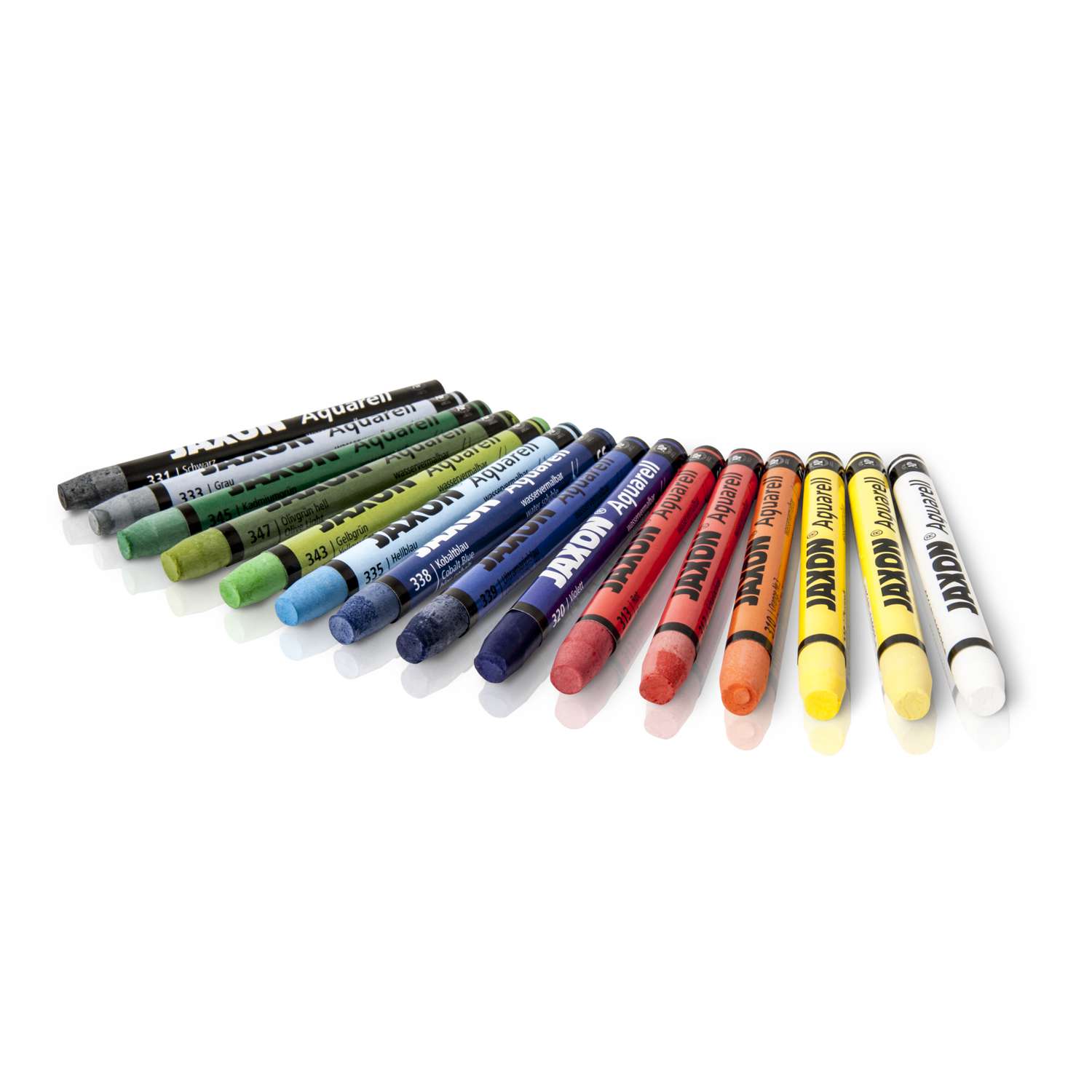 JAXON® Water-Soluble Wax Pastels are suitable for dry and wet techniques, watercolour techniques, mixing techniques etc. They are uniformly consistent, luminous and intermixable. Each crayon measures: 8 mm x 93 mm.