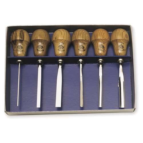 This Kirschen Lino & Wood Cutting Tool Set contains 6 tools in a practical gift box. The tools have pear shaped handles making them comfortable to hold and precise to control. They are suitable for amateurs & professionals.