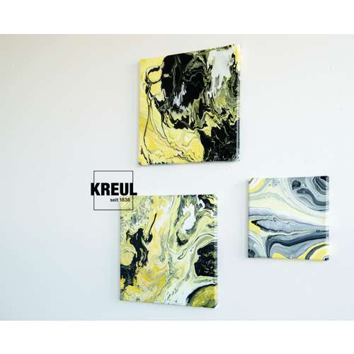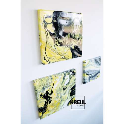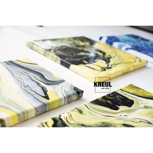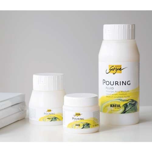 KREUL SOLO Goya Pouring Fluid is a liquid acrylic medium used with acrylic paints to create unique patterns, contrasting colour combinations, gradients, galaxy like effects etc.