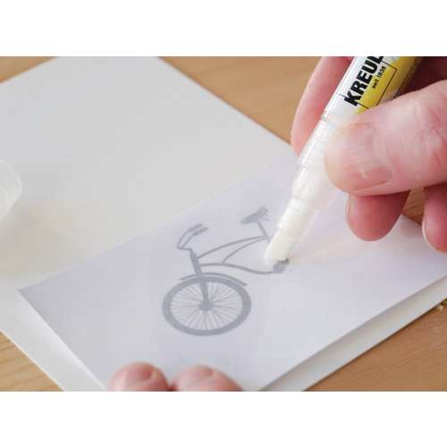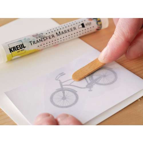 To use KREUL TRANSFER MARKERS simply open the cap, coat the back of the motif with the marker, press on and you're done! (see full instructions below) The transferred designs are sharp-edged and look like they have been printed. These markers are suitable for use on various surfaces such as paper, card, wood, cork, terracotta, foam rubber, stone, ceramics, fabrics made from natural fibres etc.