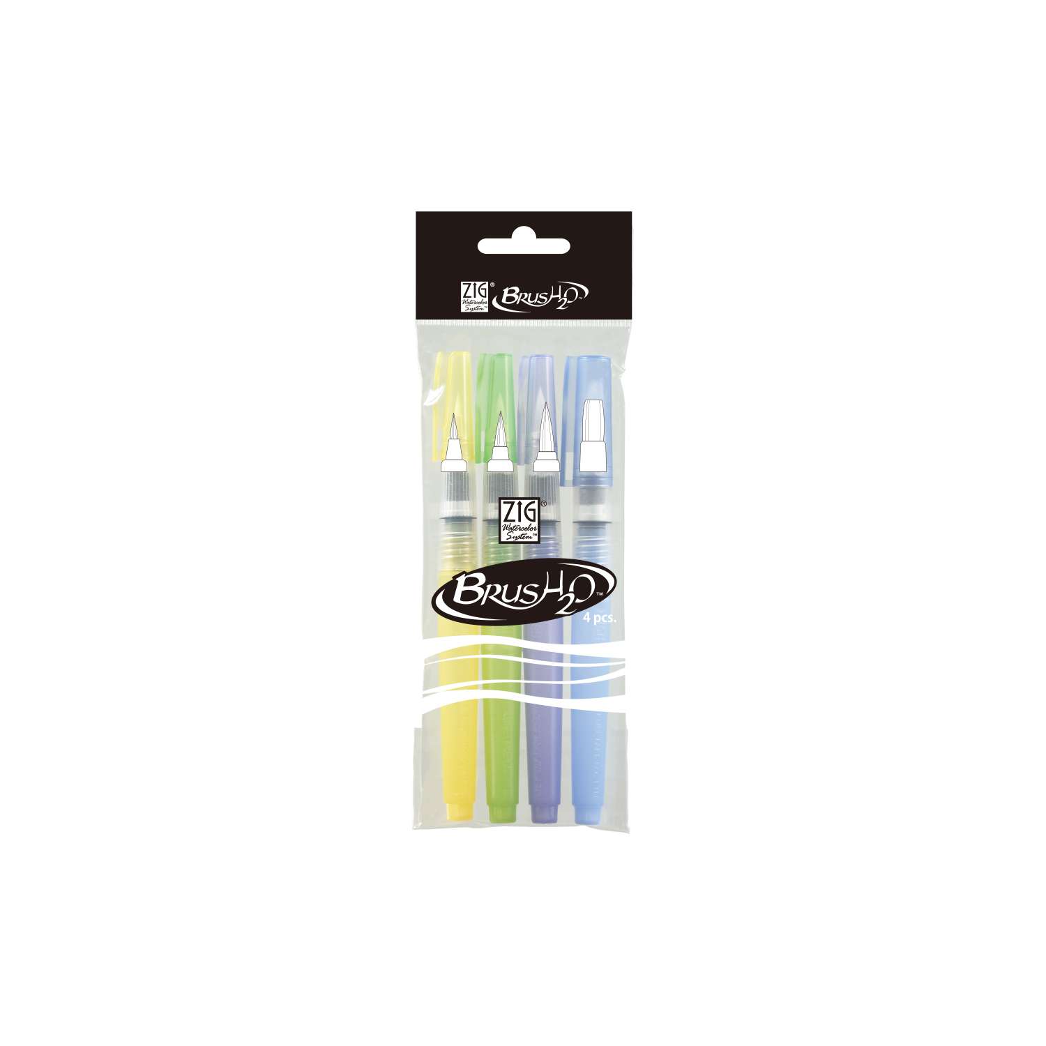 The Kuretake ZIG® BrusH2O pack contains 4 reservoir brushes. The tips of fine, flexible nylon fibres are ideal for producing fine lines or bold strokes.