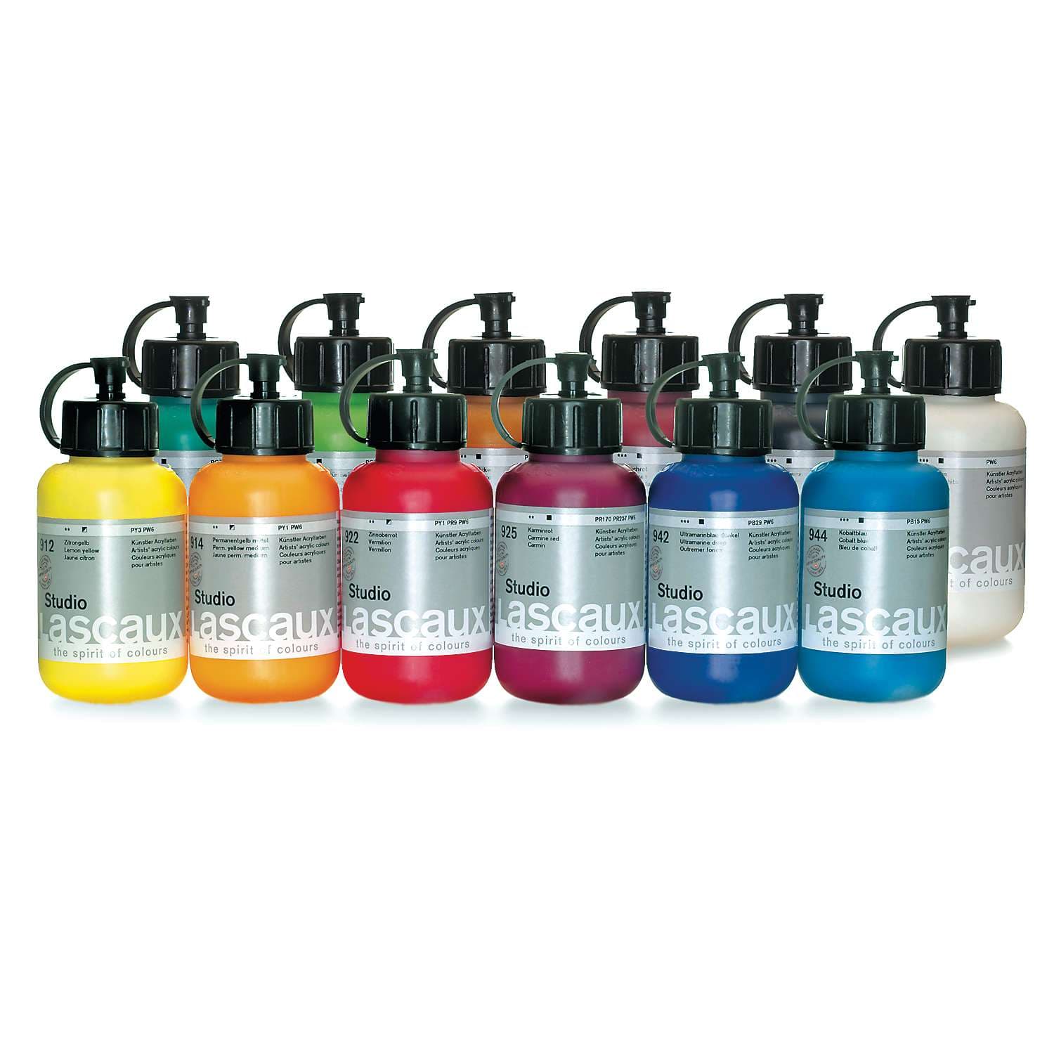 Lascaux Studio Artists' Acrylic Sets contain12 bottles of this high quality acrylic paint. It is ideal not only for artists but also for design and home decor purposes, and will adhere to almost any grease-free surface.