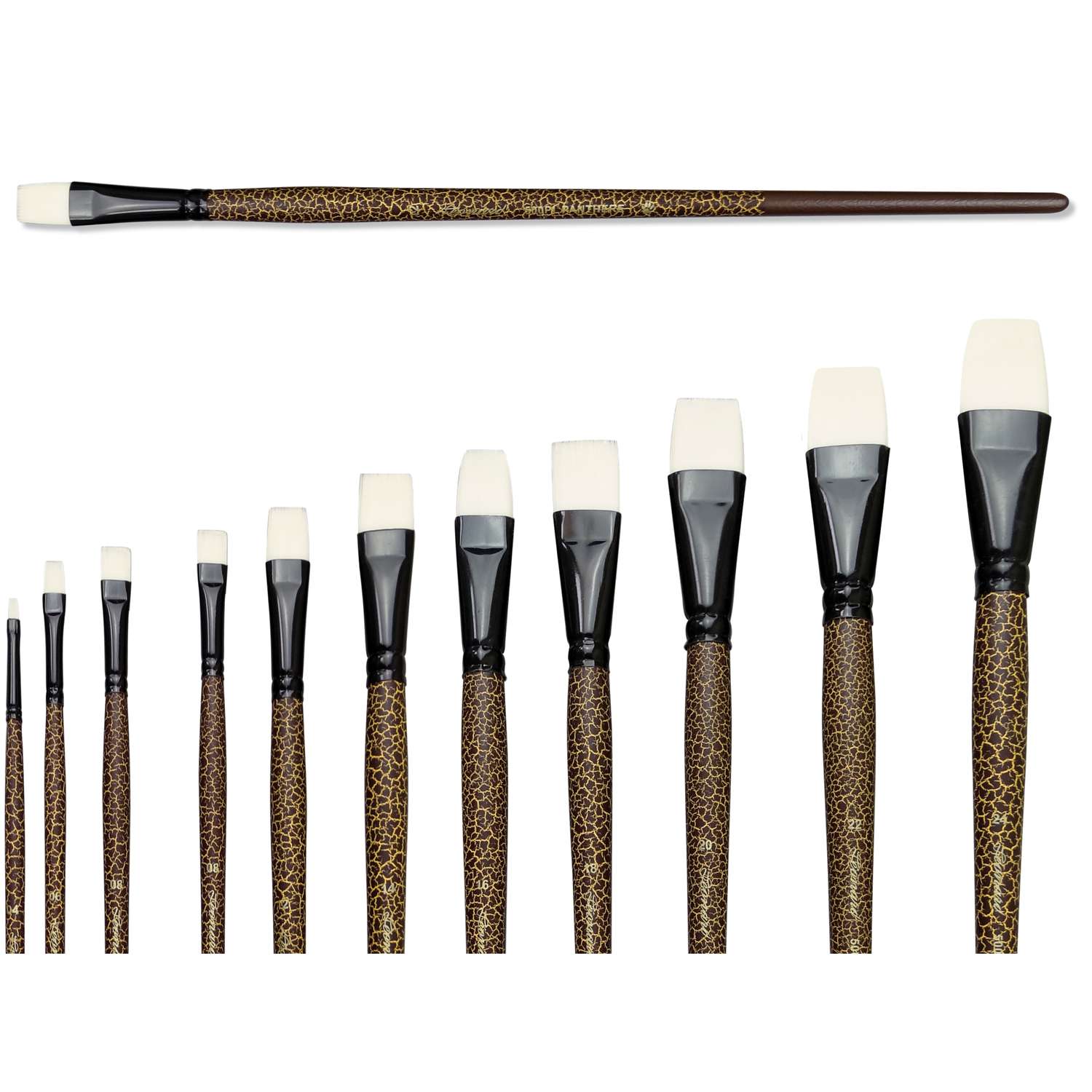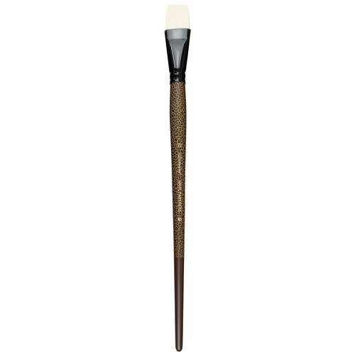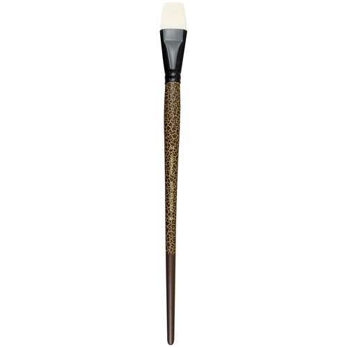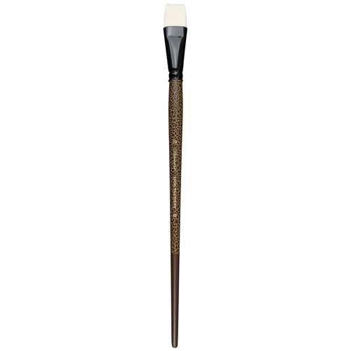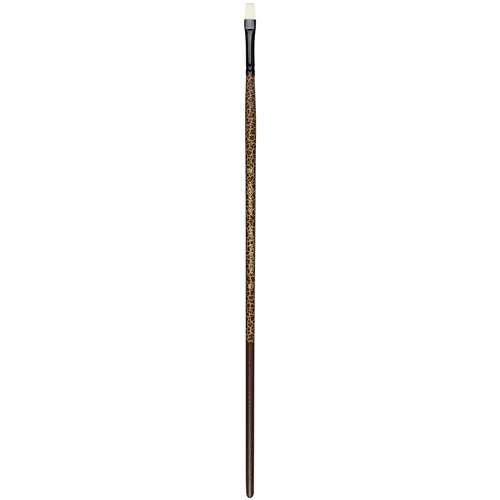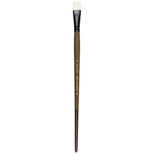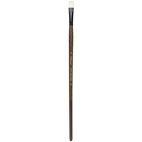 These synthetic flat brushes have nickel-plated and black-lacquered brass ferrules, on long handles lacquered in a leopard motif. They are multi-technique, and - because the hair is quite firm - are ideal for pastose paints.