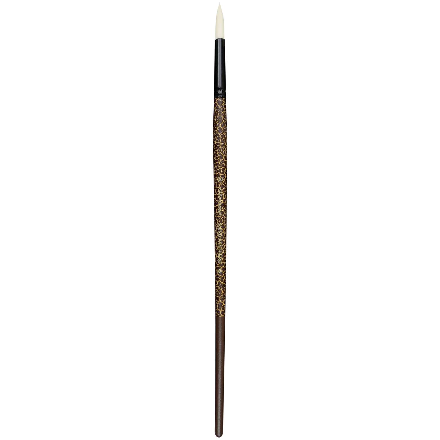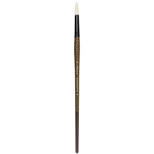 These synthetic round brushes have nickel-plated and black-lacquered brass ferrules, on long handles lacquered in a leopard motif. They are multi-technique, and - because the hair is quite firm - are ideal for pastose paints.