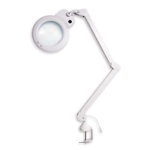 The lamp features a strong, flexible arm that has a long reach of 120 cm (47 inches). It also comes with a clamp, which enables it to be secured to desks, benches, easels etc. The lens of the lamp is protected by a cover, which is supplied with the lamp. It is designed to guard the lens against dust and scratches. This cover can be easily placed over the lens when the lamp is not in use or you just want to use the lamp function rather than the magnification function.