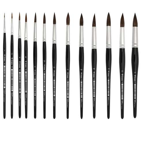 These traditionally handmade brushes have round, sharply pointed tips of the softest squirrel hair. The large brush bellies ensure excellent colour uptake.