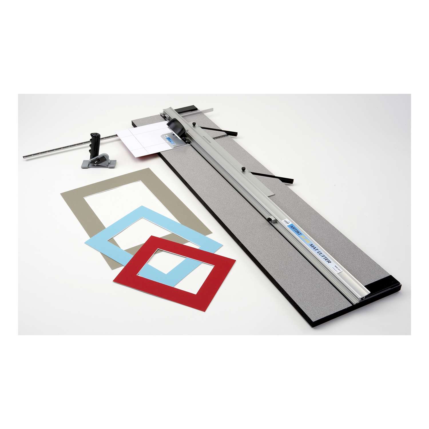 This mat cutter is an excellent choice for artists and at-home framers needing a standard capacity machine. It has a parallel back mat guide and a squaring bar with stop to help position the mountboard.