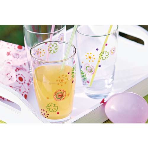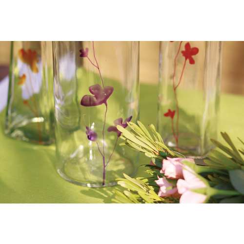 The Marabu Porcelain & Glass Painters are available in metallic and glitter colours which conjure up very special effects. Decorated objects are dishwasher-safe by simply fixing them in the oven. The colour is more transparent on glass than on porcelain.
