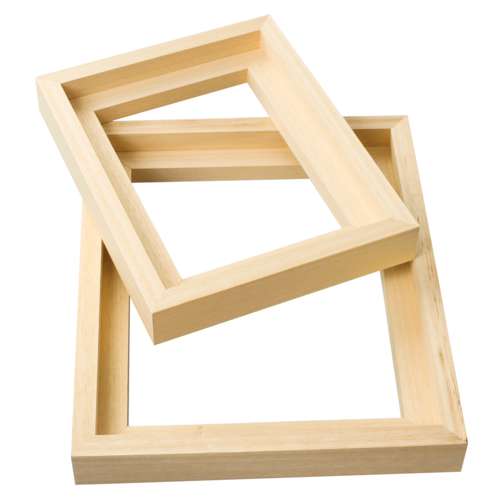 nielsen® Atlantis Floater Frame kits contain 2 light, untreated Abachi wood strips with pre-milled profile openings, plastic profiles and fixing screws. Please note: backing board and glass are not included.