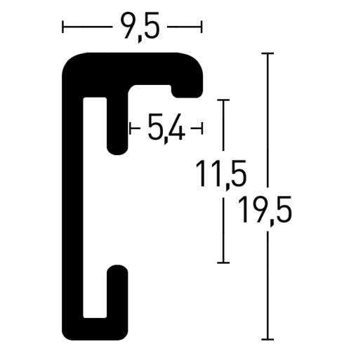 These nielsen® Classic Aluminium Frames are supplied with a 2 mm thick pane of normal glass (apart from 52 cm x 150 cm, which has a clear polystyrol panel), an MDF back panel with strong metal clips, and an acid-free insert. The profile of these nielsen® Classic Aluminium Frames is 9.5 mm wide by 19.5 mm high, with a maximum insertion height of 2.5 mm.
