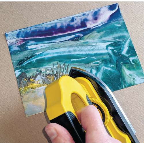 The heat melts the wax colours so you can create beautiful textures and vibrant colours when applying to specially coated paper. The temperature is regulated by the thermostat and thanks to the rubberised soft grip handle, the Pebaro Encaustic Flat Iron always sits comfortably in the hand, and also has a good grip on the table. The handle of the iron can also be easily removed and inserted at the side - for simple and space-saving storage, and also to convert the iron into a practical painting plate.