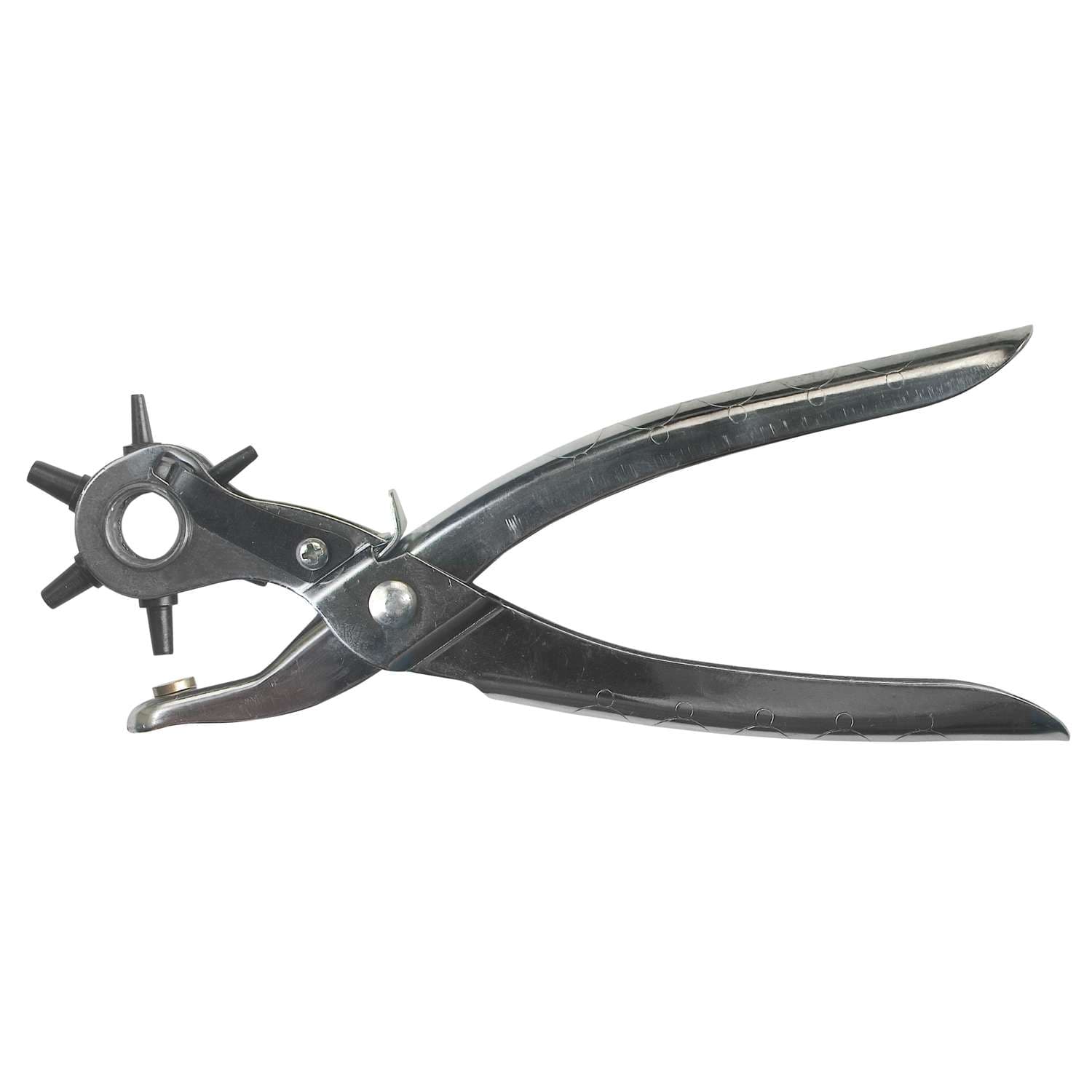 These compact punch pliers offer a balance between portable size (200 mm) and sufficient leverage. They include six selectable hole diameters: 2.0, 2.5, 3.0, 3.5, 4.0, and 4.5 mm.