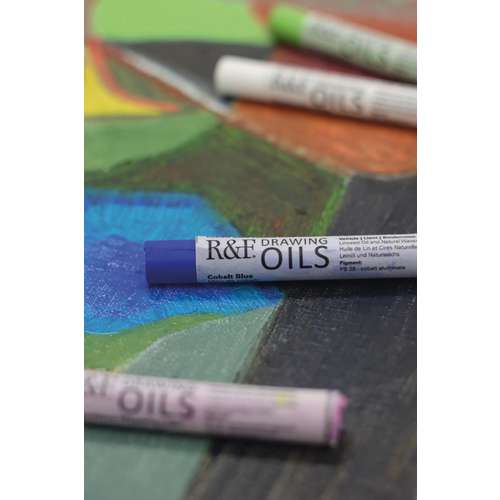 R&F® HANDMADE PAINTS® DRAWING OILS™ were inspired by the R&F® Pigment Sticks, and offer a smooth and portable drawing experience with a harder formulation (less oil, more wax). They are made from linseed oil and natural waxes.