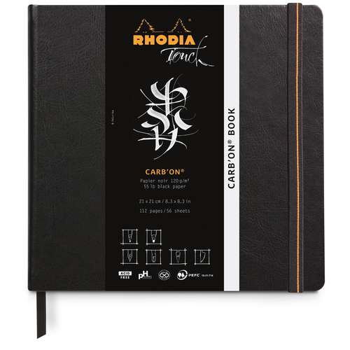 RHODIA® Touch Carb'on Books contain 56 sheets (112 pages) of 120 gsm, black, Carb'On mixed media paper.