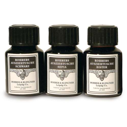 Rohrer & Klingner Black Indian Ink is universal in its scope. This top quality ink is suitable for fine calligraphy, pen and ink drawing, brush drawing and splatter techniques.