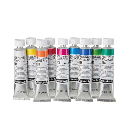 Schmincke HKS® Designers' Gouache series 25 is made from a lime gum base, using modern, authorised and non-toxic pigments. The colours offer maximum opacity, and are colour-intensive and velvety matt.