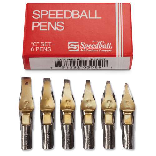 These Speedball® Pen Nib sets contain 6 nibs and are available for each of the 4 series of Speedball calligraphy nibs. They are suitable for use with any straight/classic style penholder.