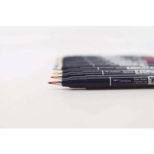 TOMBOW® Fudenosuke Colour Brush pens have an elastic tip for variable line widths: the line width varies from very fine to broad by applying pressure to the tip. The hard tip is excellent for very small writing and details.