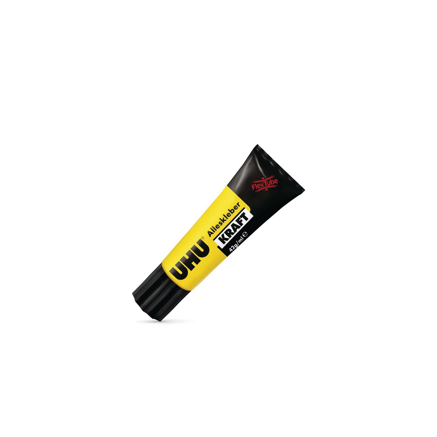 This Uhu All-Purpose Flex & Clean Kraft Glue sticks everything: wood, wooden materials, plastics (ABS, hard and soft PVC, Plexiglas, polystyrene etc), metal, glass, porcelain, ceramics, leather, rubber, felt, cork, fabric, cardboard, paper etc. reliably and with exceptional adhesive power. The adhesive film remains elastic thus allowing for material tensions. It is UV and water resistant. Uhu All-Purpose Flex & Clean Kraft Glue is sold in special soft unbreakable plastic 42g tubes.