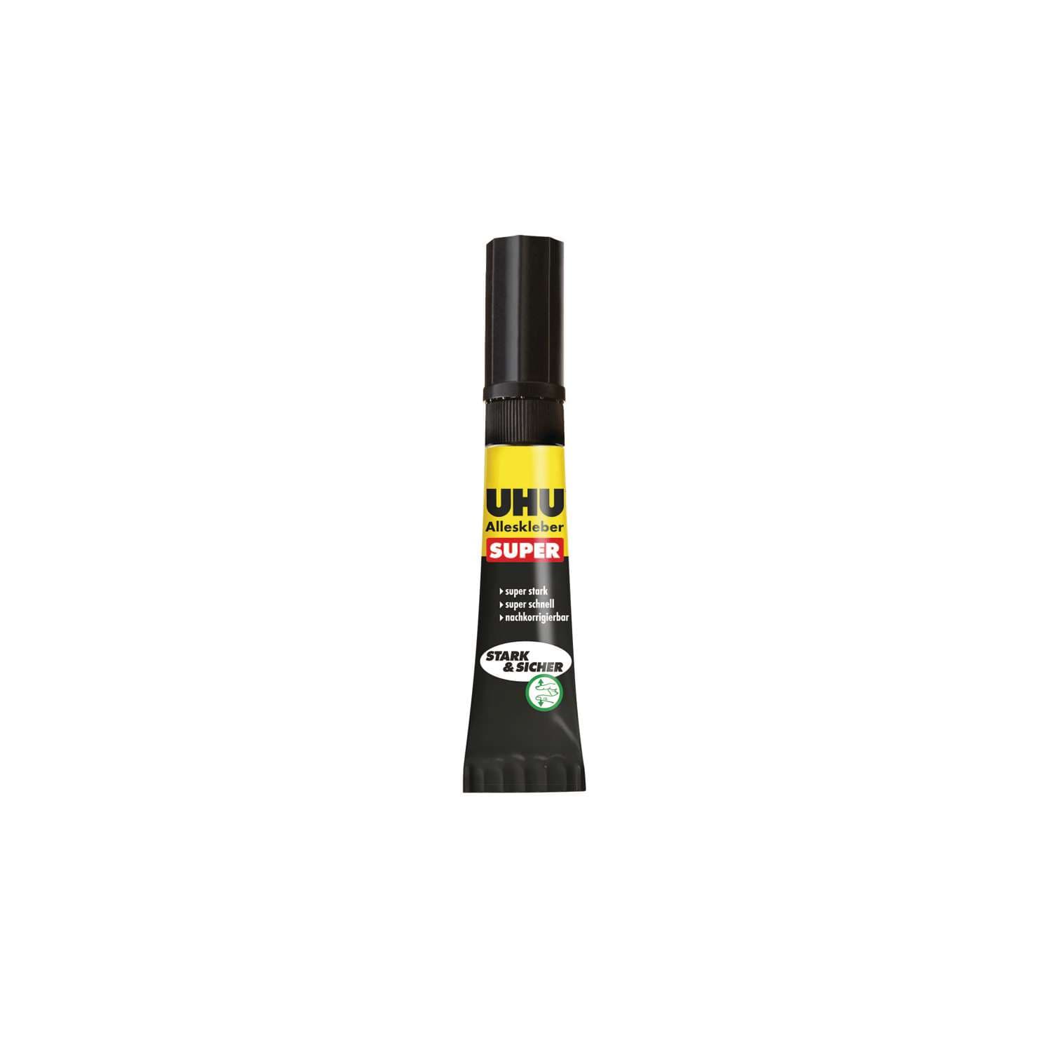 Uhu All-Purpose Strong & Safe Adhesive is initially repositionable and does not immediately stick your fingers! It is suitable for almost all flexible, solid, porous and non-porous materials.
