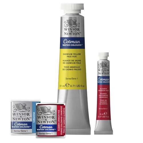 WINSOR & NEWTON™ Cotman WATERCOLOUR™ Paints are available in half-pans or 8 ml or 21 ml tubes.